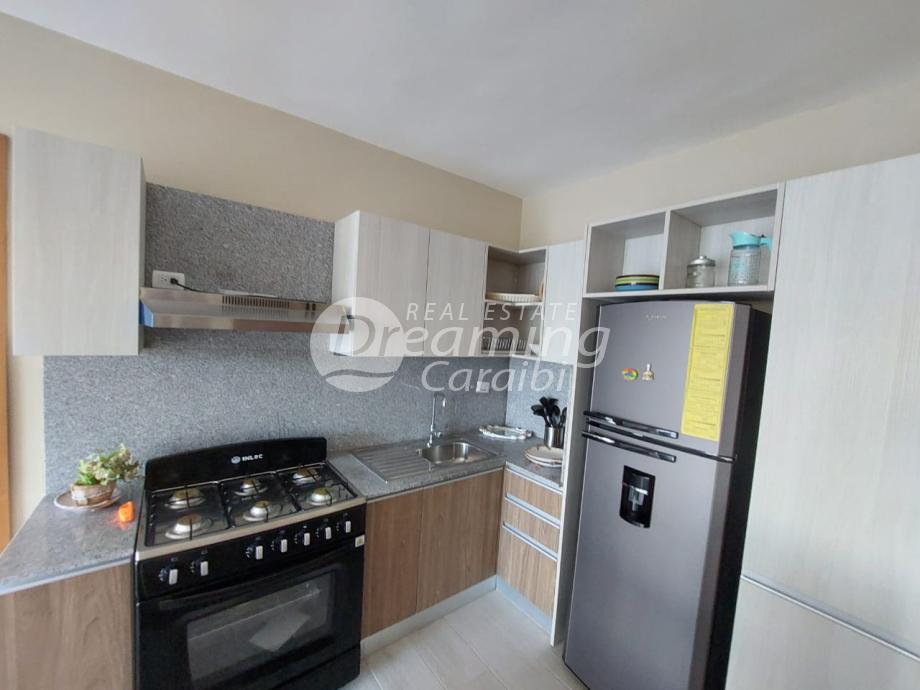 Apartamento compuesto por amplio salón con cocina, lavadero, balcón, dos dormitorios y dos baños.