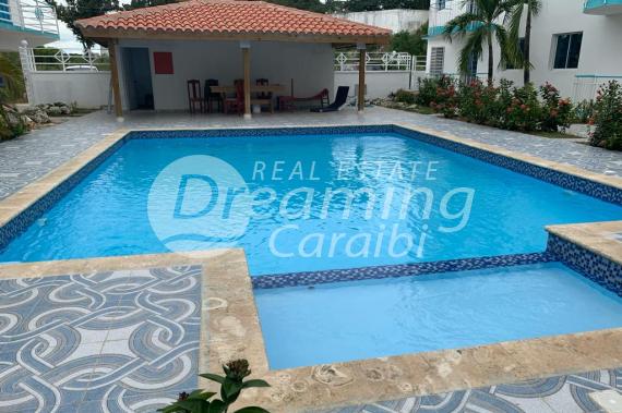 Au sein d'une petite résidence avec piscine, sur la communauté de Bayahibe, dans un quartier en développement populaire nous disposons d'un appartement d'environ 50m2, au premier niveau, entièrement meublé, composé d'un séjour avec cuisine, balcon, chambre avec air climatisé et salle de bain.