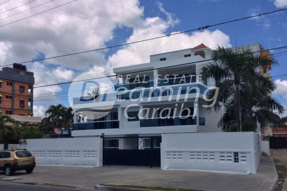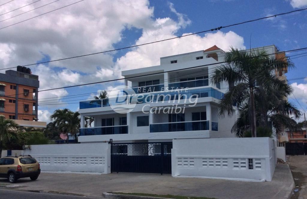 La propriété se compose d'un parking commun, de 12 appartements et d'une terrasse au dernier étage utilisée pour des événements, avec vue sur la mer.